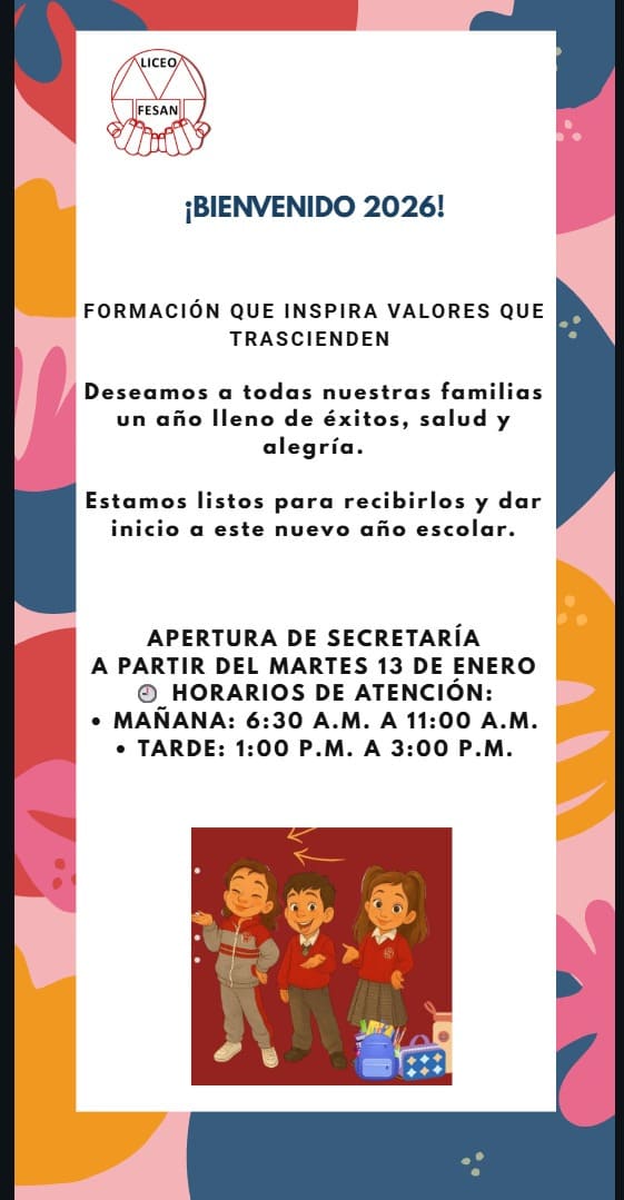 13 enero, 2026Informamos a toda nuestra comunidad educativa del Liceo Fesan, que ya se encuentra disponible para su respectiva consulta el...